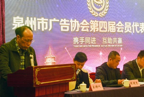 泉州市广告协会第三届理事会已届满,经泉州市工商局批示,于2016年3月18日在湖美大酒店十二楼召开第四届会员代表大会。我公司总经理出席代表大会,并于主席台就座。经过全场百余名广告公司代表举手表决,我公司总经理当选为第四届副会长。