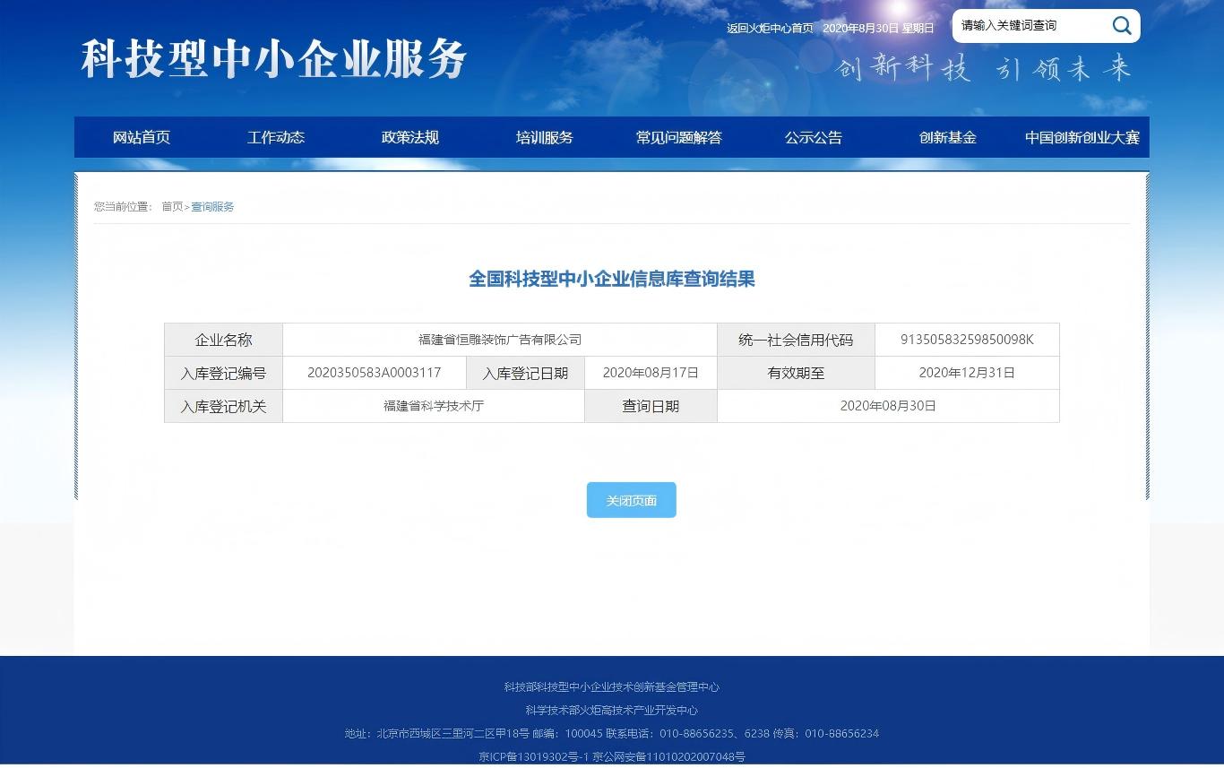 恒雕入选“全国科技型中小企业”名录