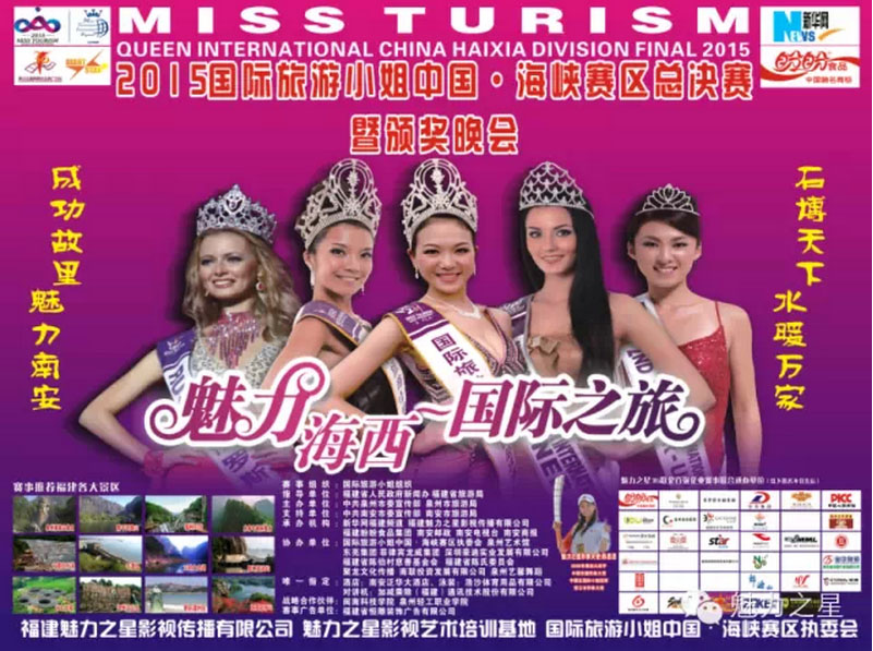 由福建省人民政府新闻办、福建省旅游局指导;中共泉州市委宣传部、泉州市旅游局主办;中共南安市委宣传部、南安市旅游局为支持单位;国际旅游小姐中国海峡赛区执委会、新华网福建频道、福建魅力之星影视传媒有限公司联合承办的2015国际旅游小姐中国·海峡赛区总决赛于2015年4月11日晚圆满落幕。